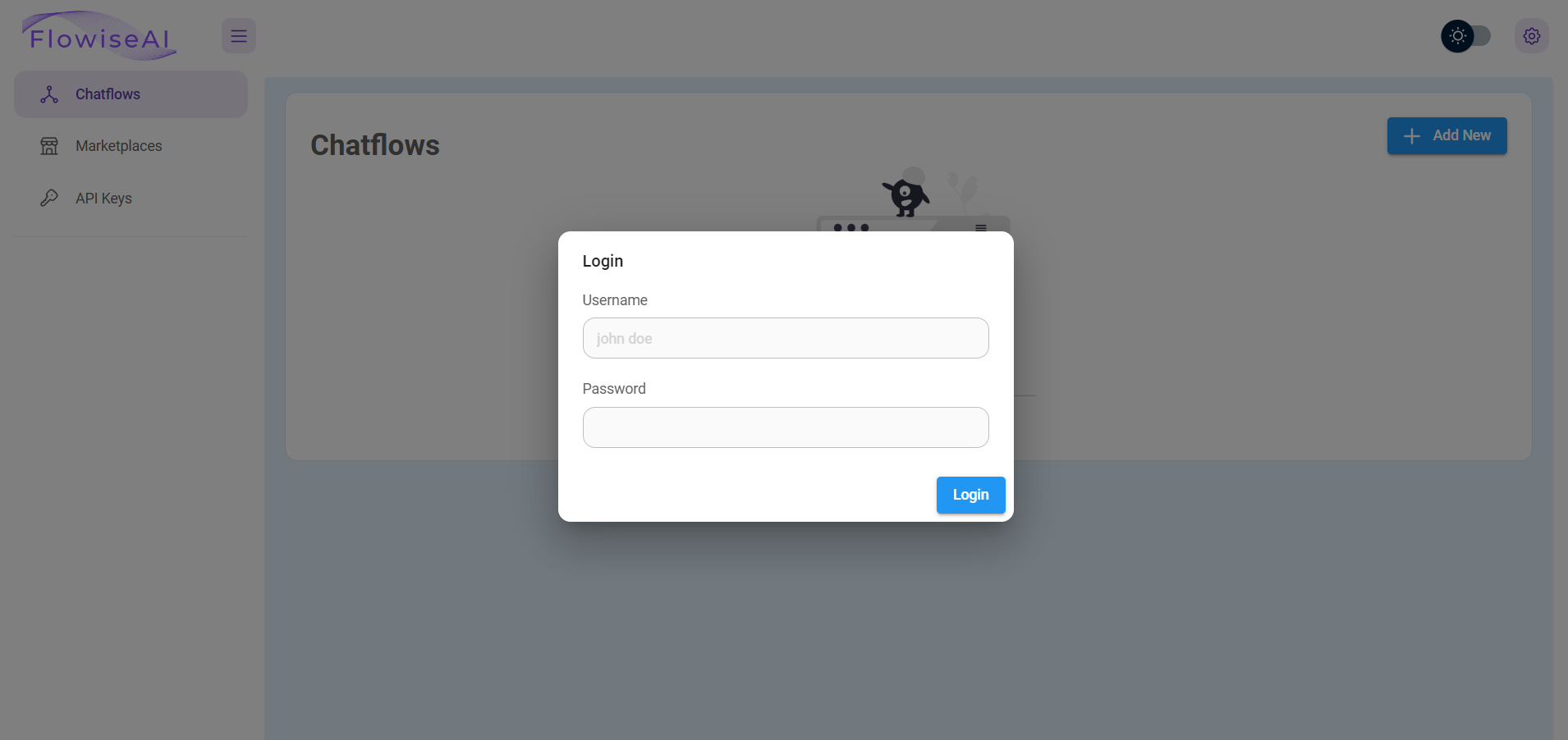 App level authorization protects your Flowise instance by username and password. This protects your apps from being accessible by anyone when deployed online.