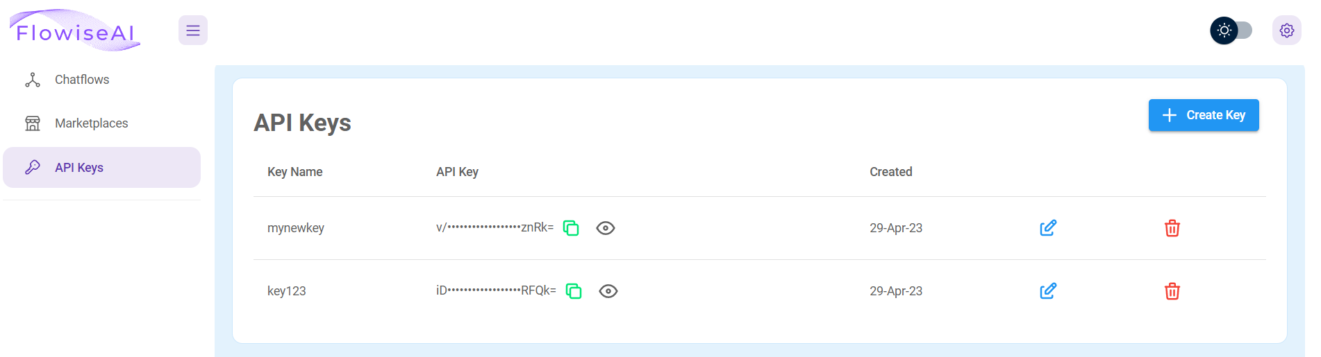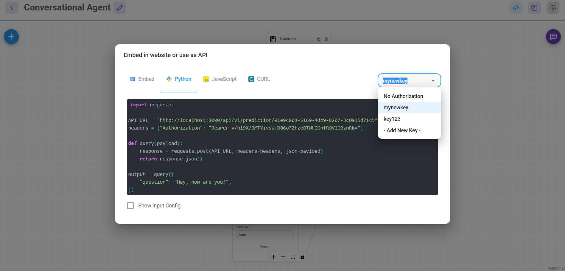 In cases where you might want to allow certain people to be able to access and interact with it, you can do so by assigning an API key for that specific chatflow.
