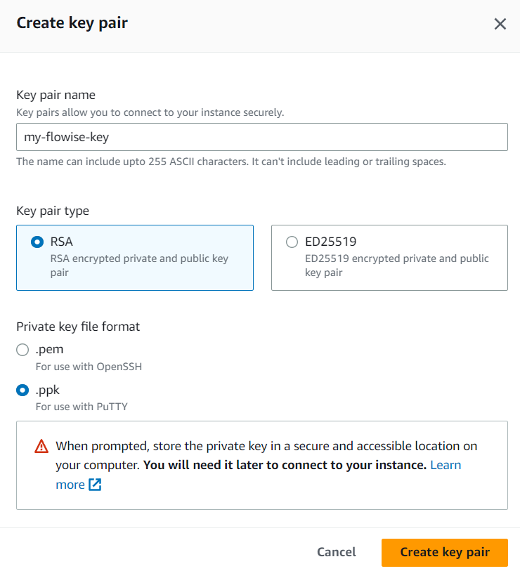 .ppkand PuTTY to connect to the instance. For Mac and Linux, we will use.pemand OpenSSH