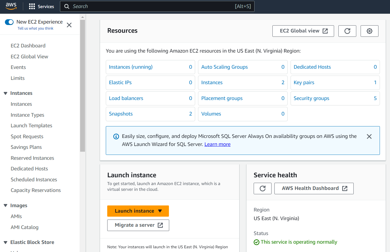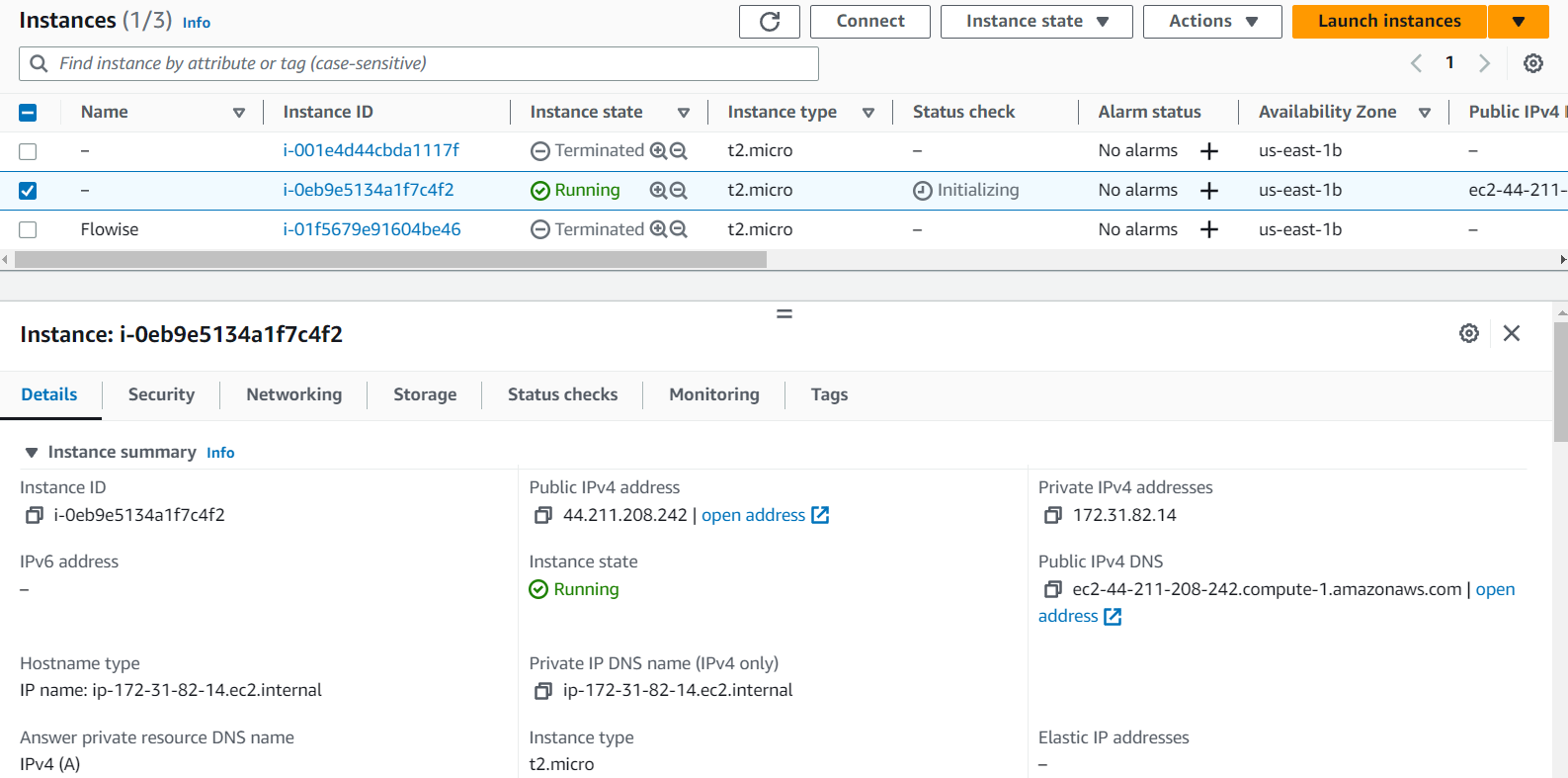 - Click Launch instance. Navigate back to EC2 Dashboard, after few mins we should be able to see a new instance up and running 🎉