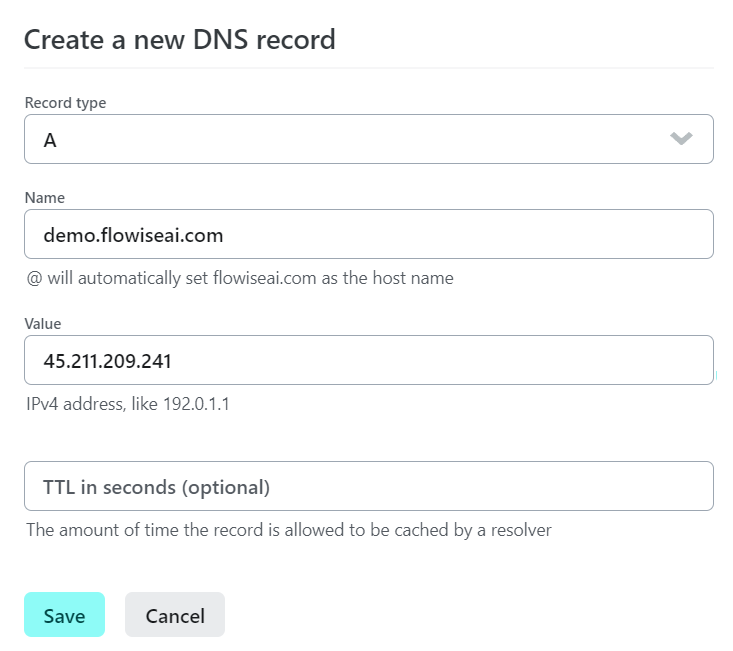 sudo systemctl restart nginx - Go to your DNS provider, and add a new A record. Name will be your domain name, and value will be the Public IPv4 address from EC2 instance
