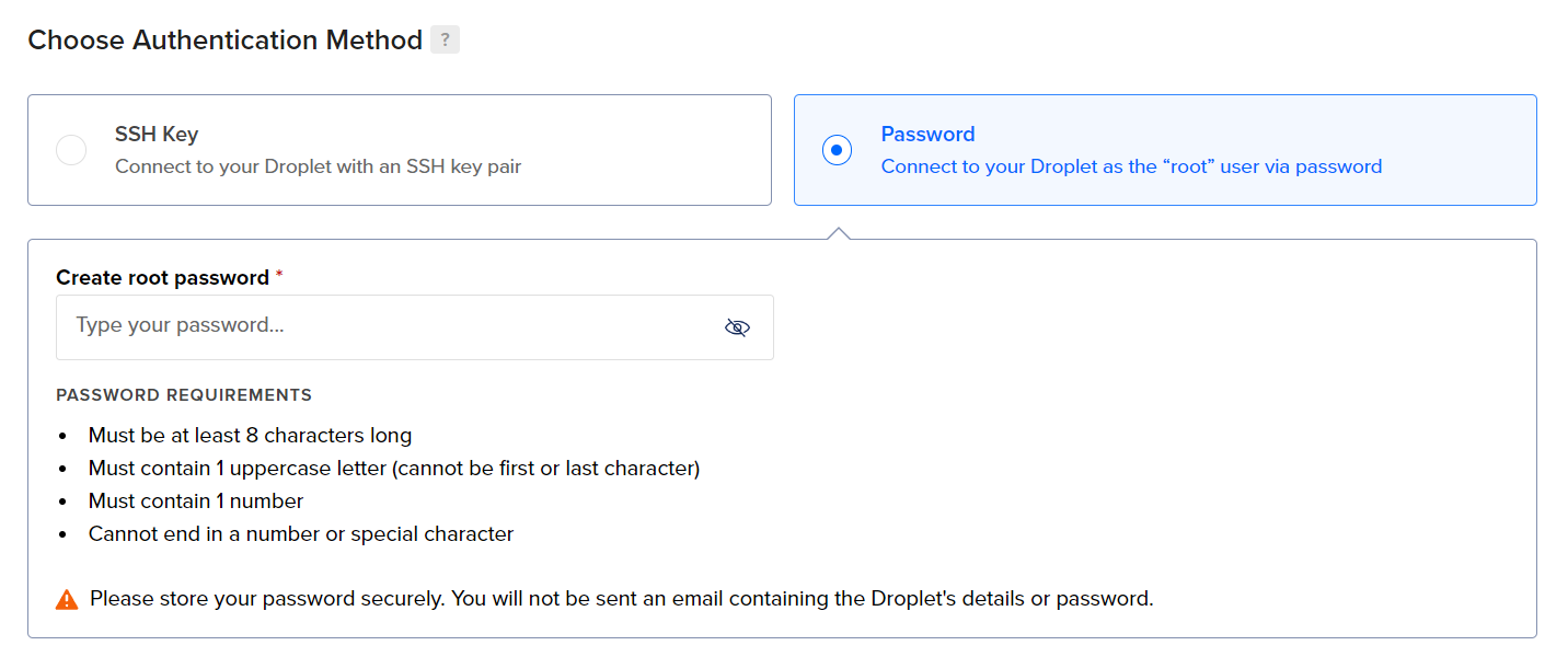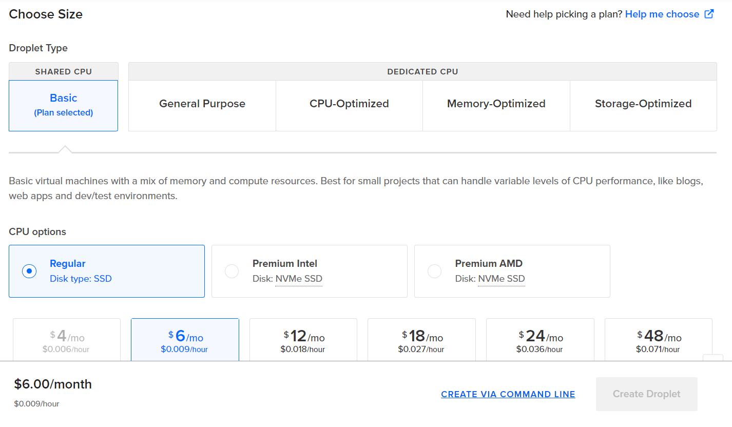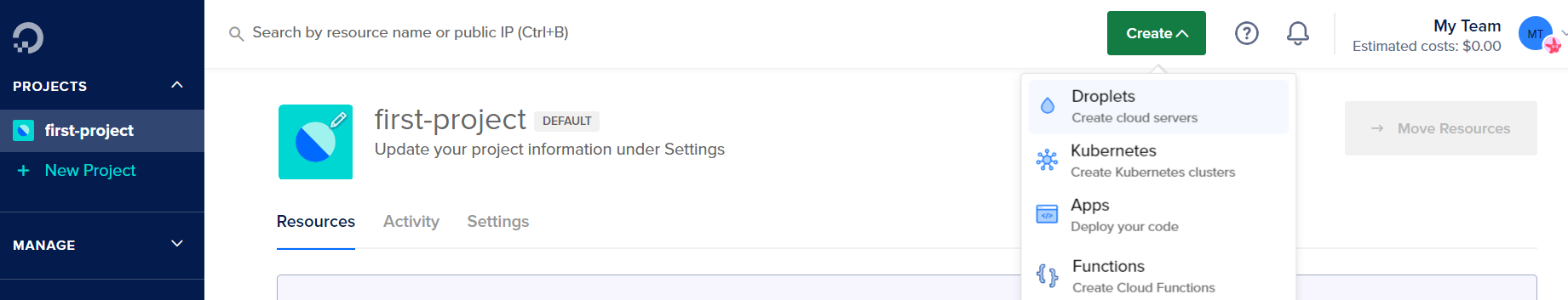 In this section, we are going to create a Droplet. For more information, refer to official guide.