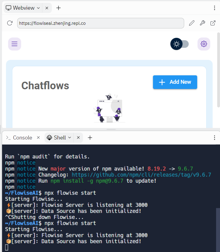 - You should now be able to see Flowise on Replit!