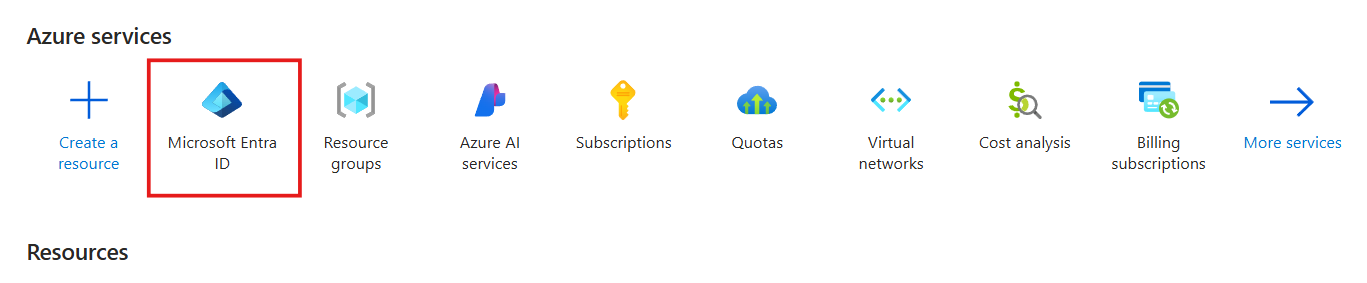 - In the Azure portal, search for Microsoft Entra ID: