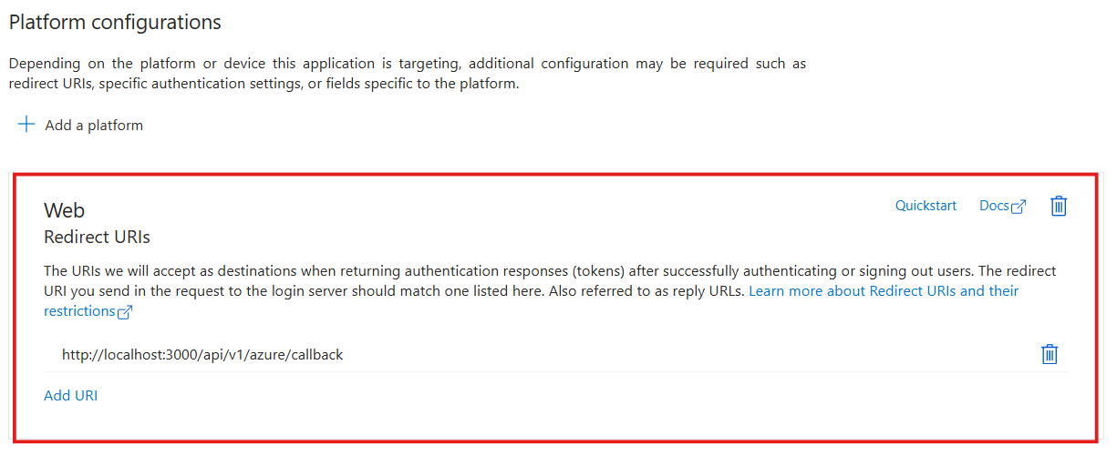 - You should be able to see the new Redirect URI created: