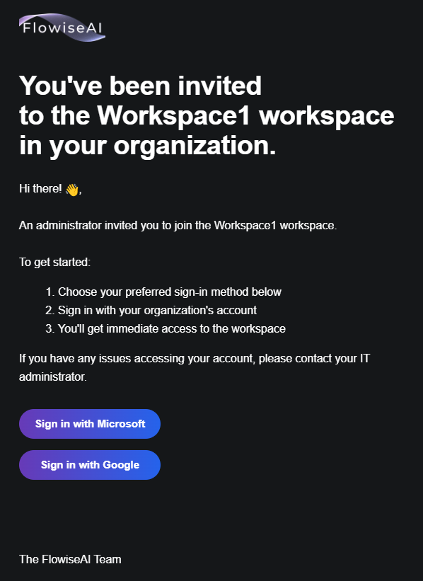 Clicking the button will bring the invited user directly to Flowise SSO login screen:
