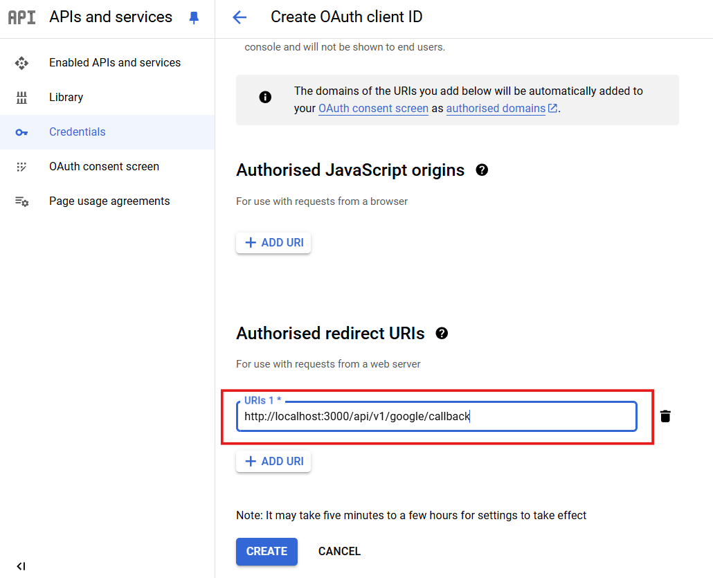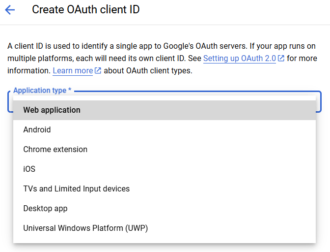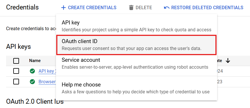 - Click Create credentials > OAuth client ID