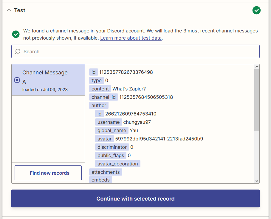Voila 🎉 you should see the message arrived in your Discord Channel