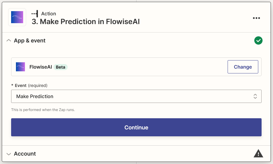 Select your prefered Channel for channel and select Text and String Source (if available) from FlowiseAI for Message Text, then click Continue