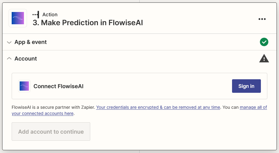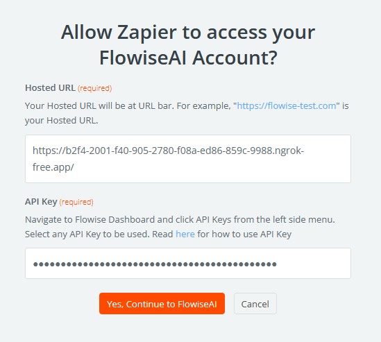 Click Sign in and insert your details, then click Yes, Continue to FlowiseAI