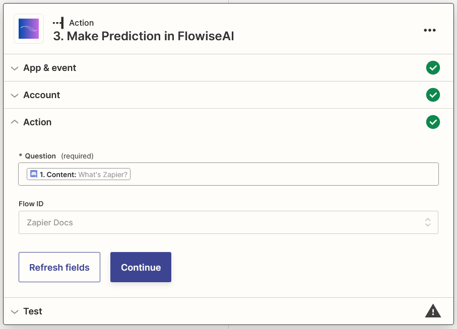 Select Content from Discord and your Flow ID, then click Continue