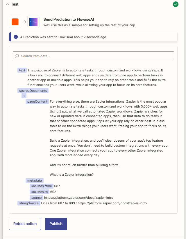FlowiseAI generate Result Message