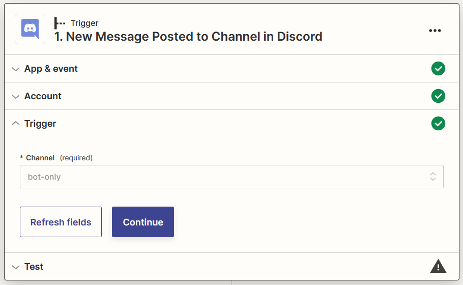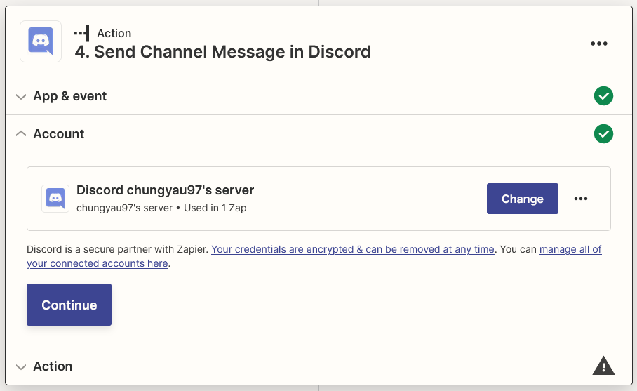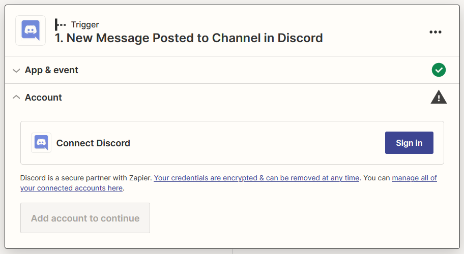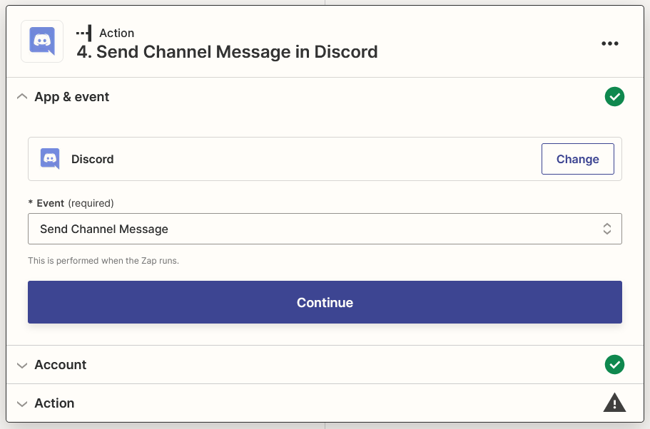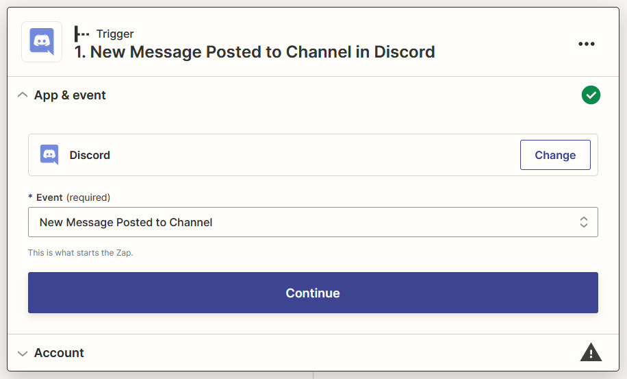 Select New Message Posted to Channel as Event then click Continue