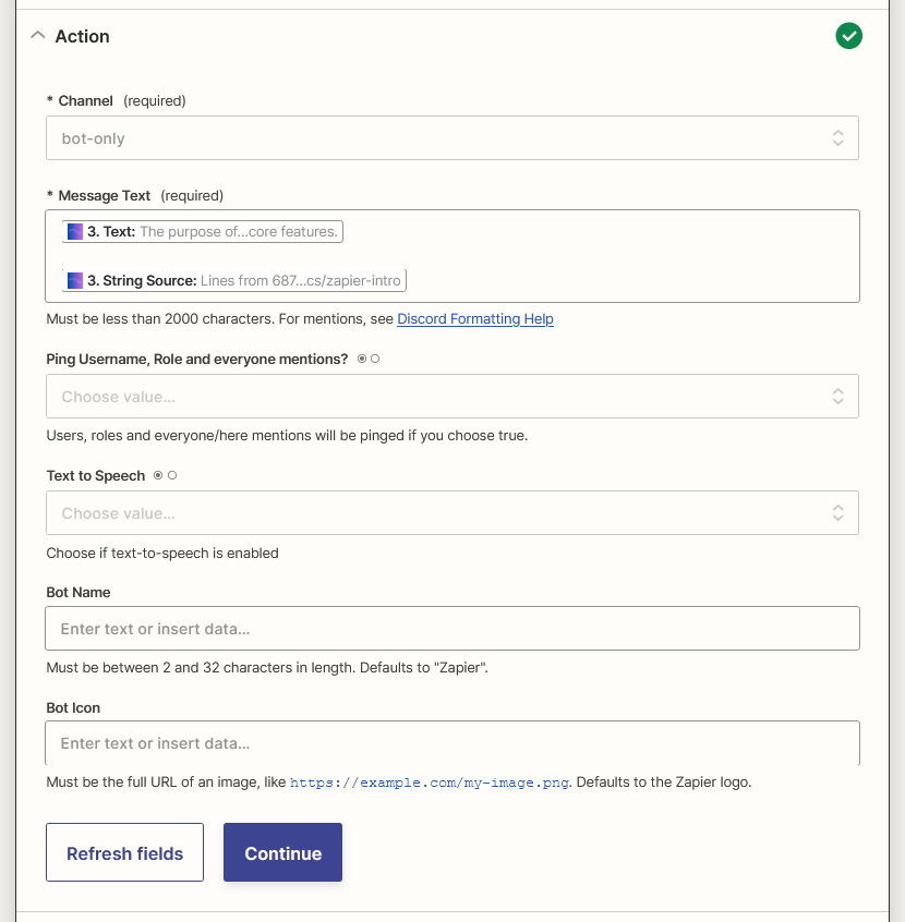 Send a message to your selected channel on step 8