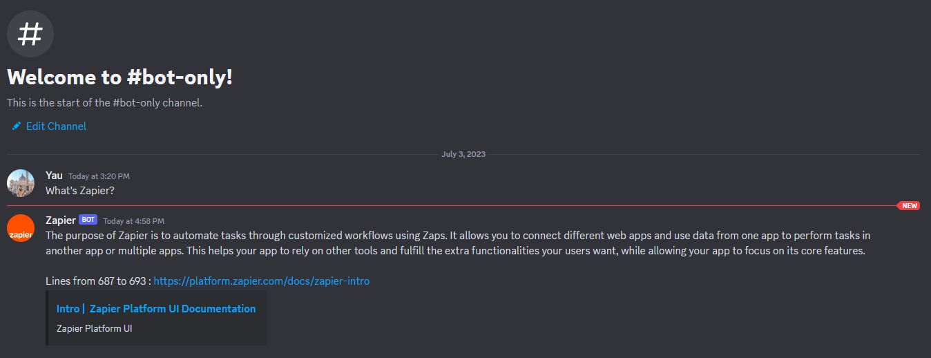 Filter out Zapier Bot’s Message