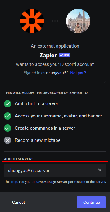 Add Zapier Bot to your prefered server