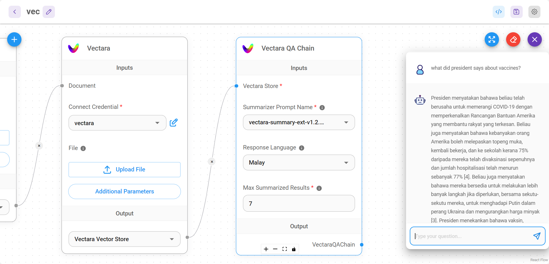 | VectaraQAChain | Final node to return response |