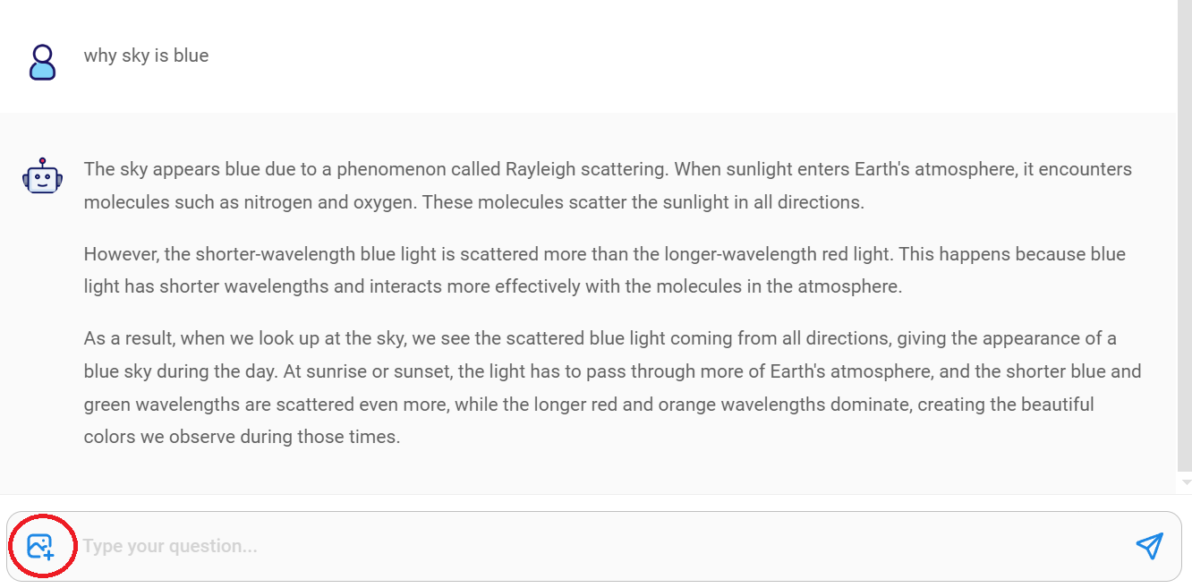 From the chat interface, you will now see a new image upload button: