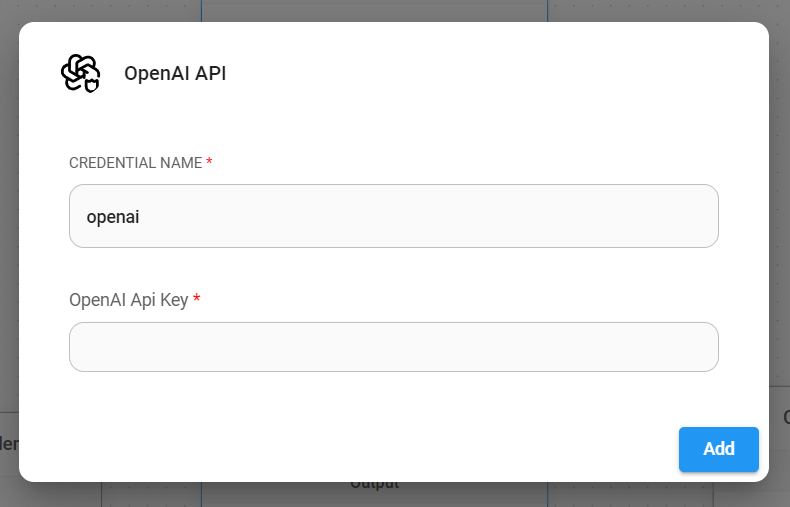 - Fill in the ChatOpenAI credential