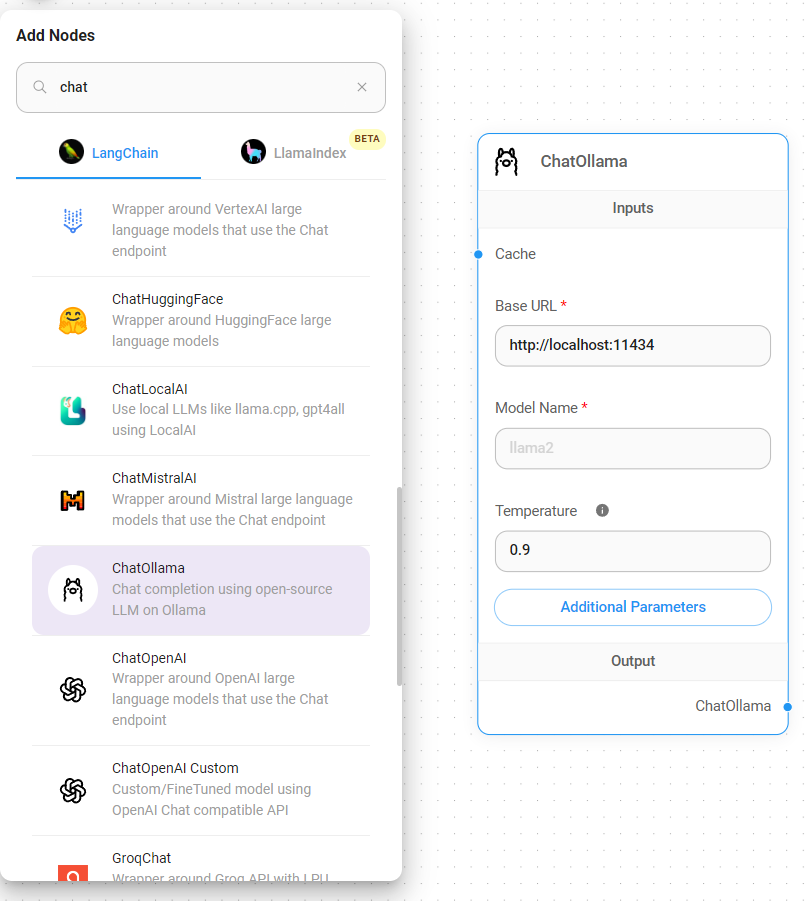 - Chat Models > drag ChatOllama node