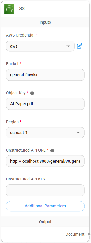 - Unstructured API URL: Endpoint for Unstructured.io API