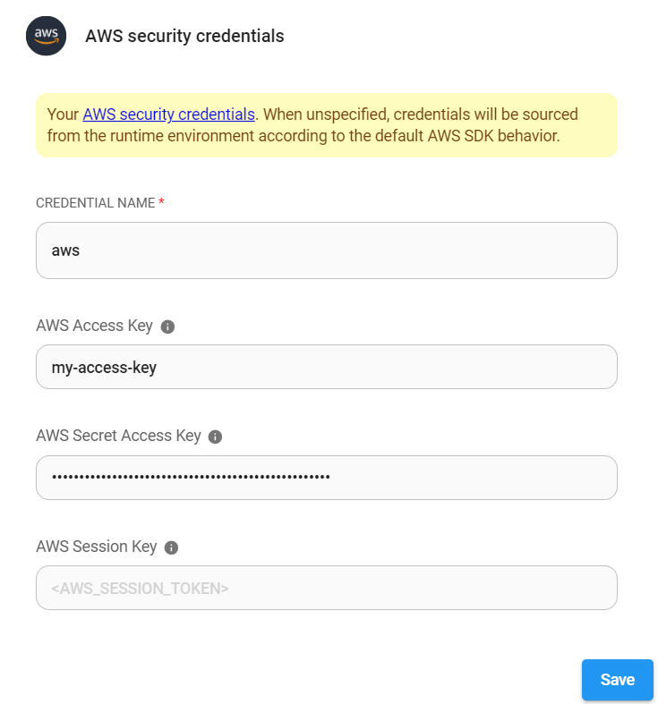 2. AWS Credential: Create a new credential for your AWS account. You’ll need the access and secret key. Remember to grant s3 bucket policy to the associated account. You can refer to the policy guide here.