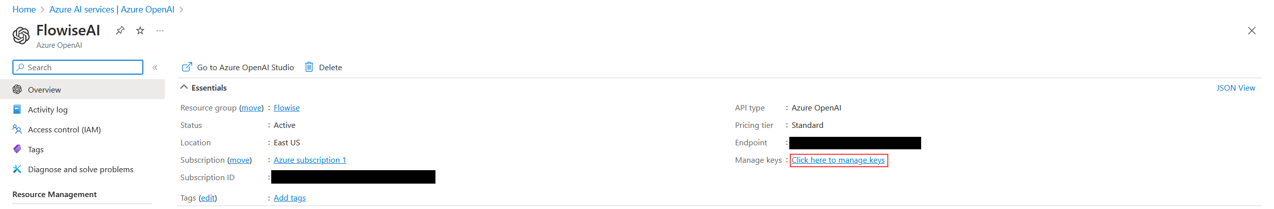 - Your API key will be available at Azure OpenAI > click name_azure_openai > click Click here to manage keys