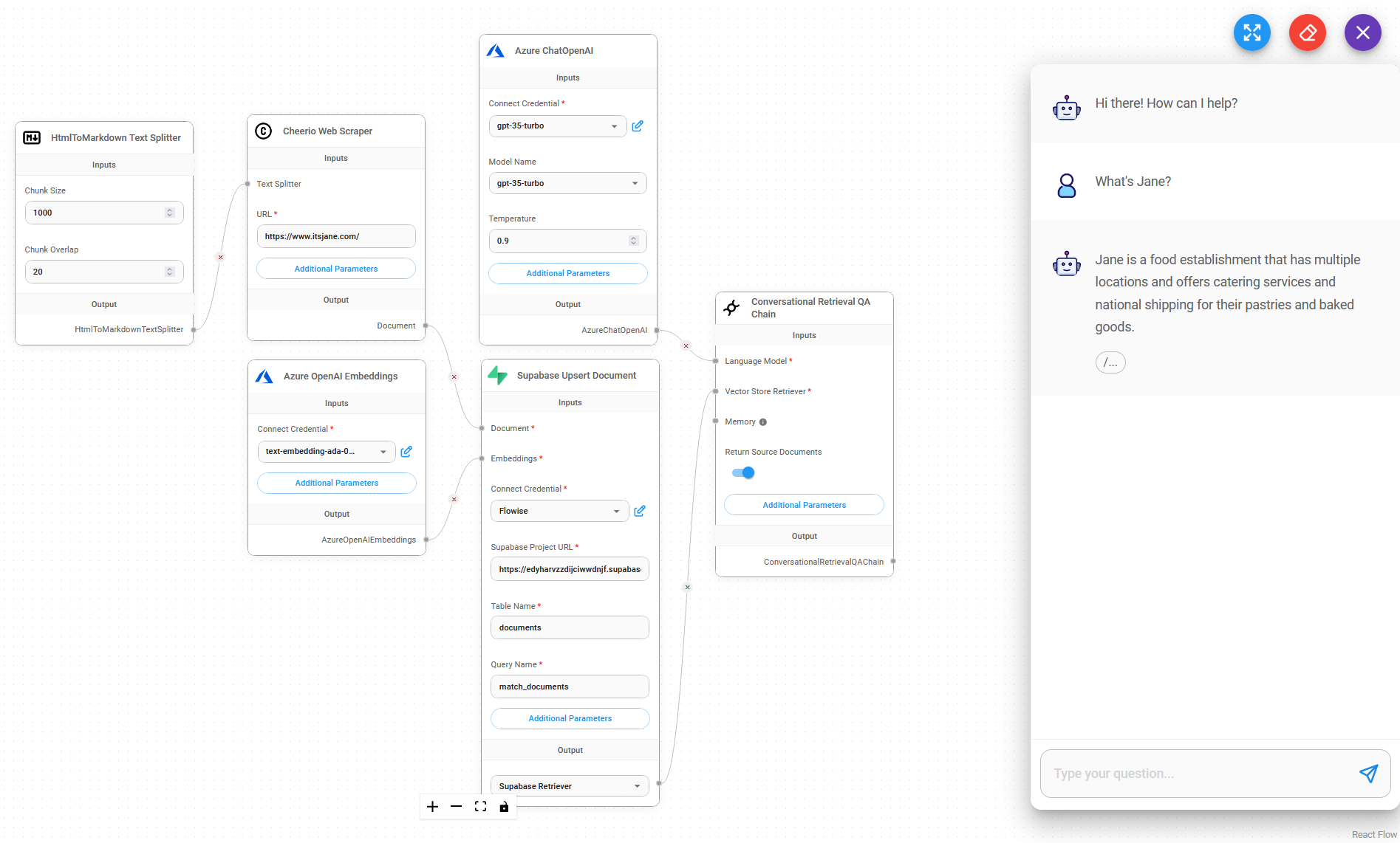 - Voila 🎉, you have created Azure OpenAI Embeddings node in Flowise