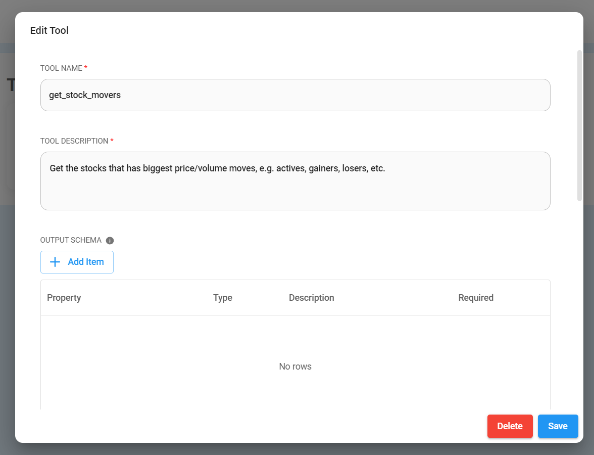 Goal: Have the agent automatically get the stock price movement, retrieve related stock news, and add a new record to Airtable.