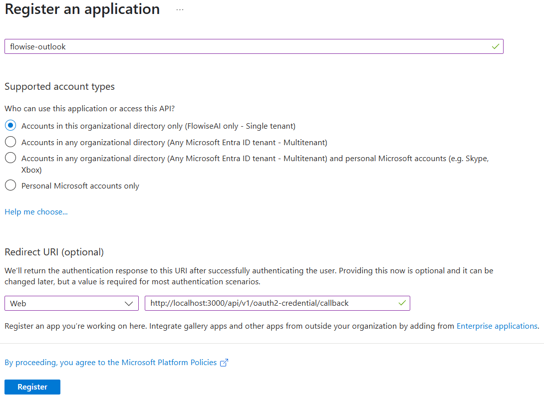 - Under “Redirect URI (optional)”, select “Web” and paste your “OAuth Redirect URL” you copied earlier.