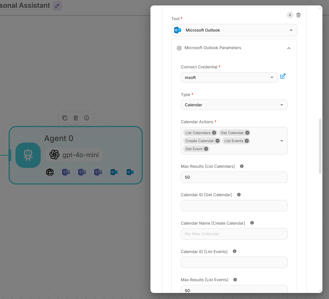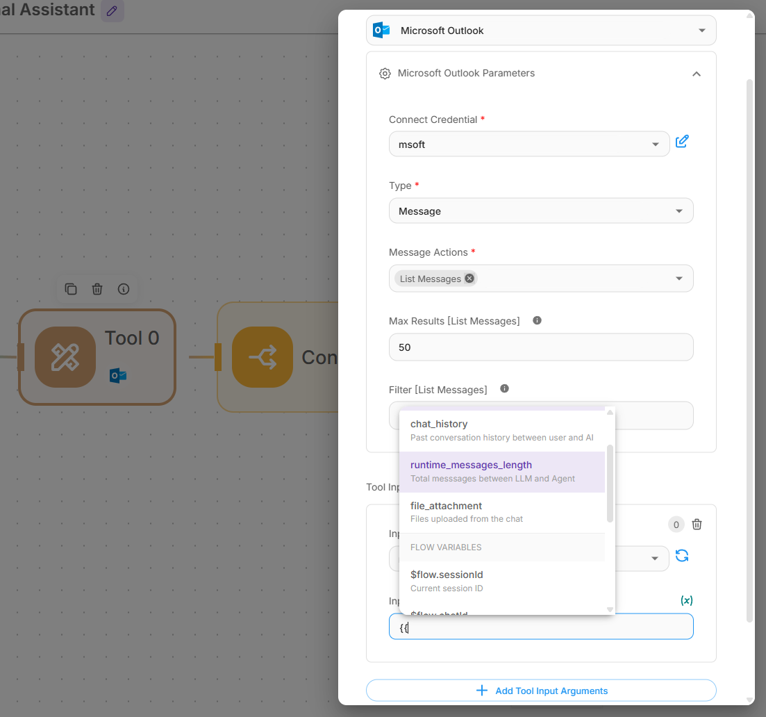 It can also be used as a Tool Node in a determined workflow scenario. For example, retrieving a list of Outlook messages before proceeding to the next step.