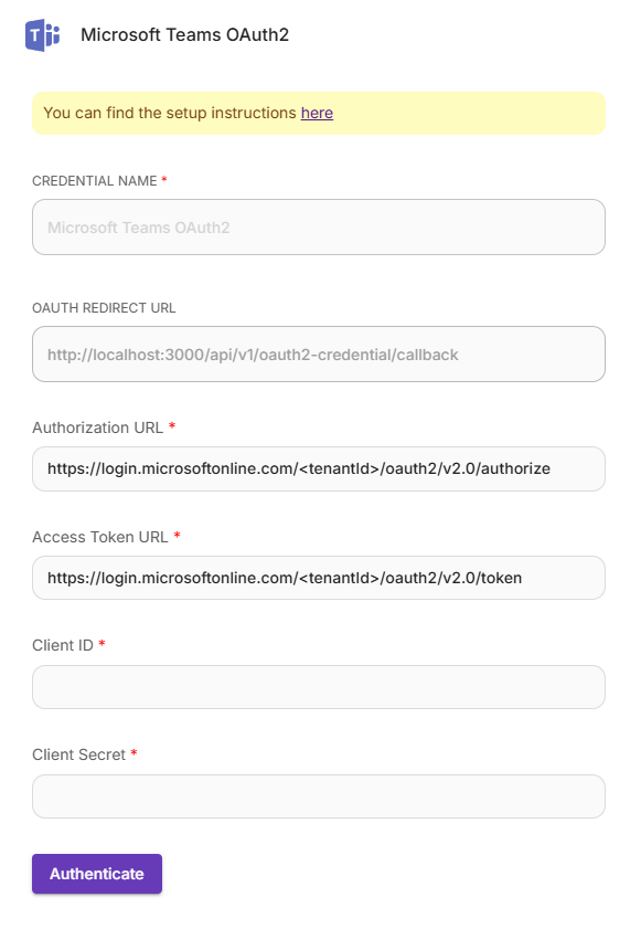 - Fill in all the values copied earlier. Then click “Authenticate”: