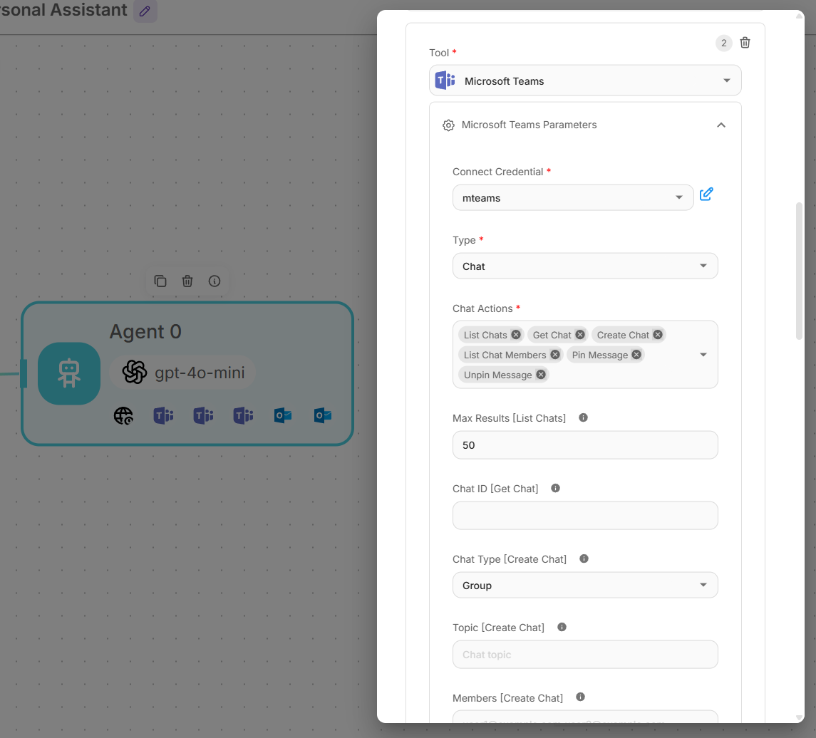 It can also be used as a Tool Node in a determined workflow scenario. For example, retrieving a list of Teams messages before proceeding to the next step.