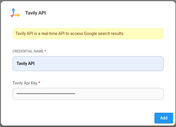 Create credentials for Tavily. Refer to the official guide on how to get the Tavily API key.
