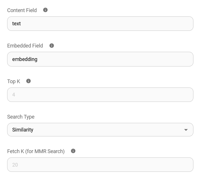 }Make sure the numDimensions property corresponds to the dimensionality of the embeddings you’re using. For instance, Cohere embeddings typically have 1024 dimensions, while OpenAI embeddings have 1536 by default.
