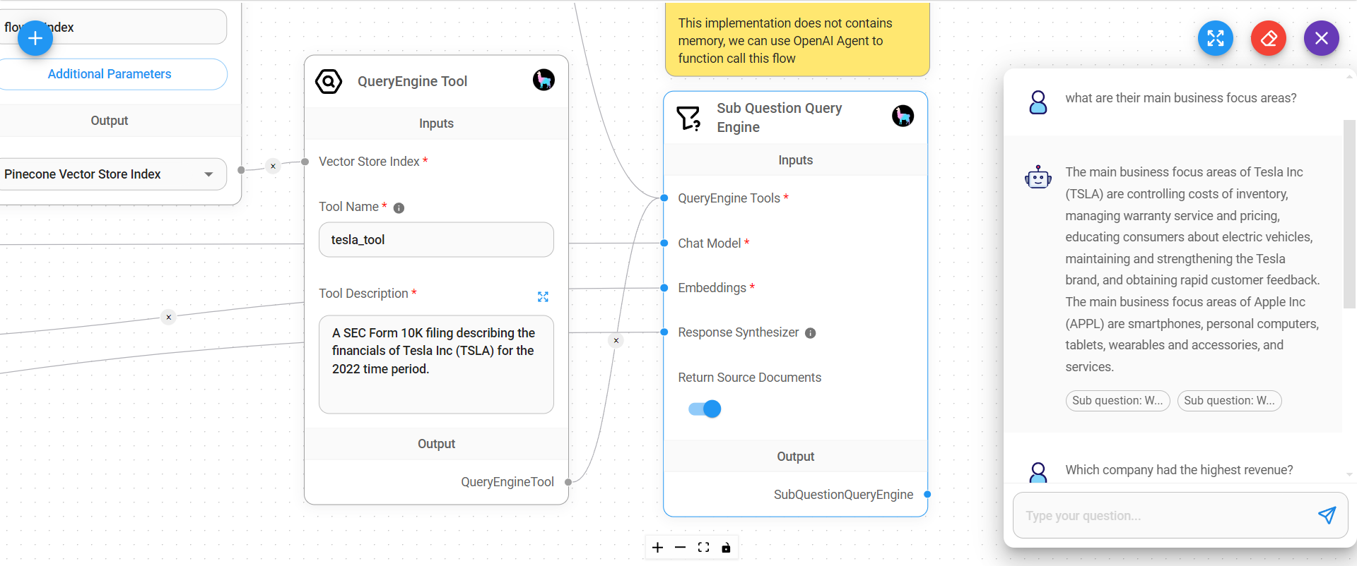 A query engine designed to solve problem of answering a complex query using multiple data sources. It first breaks down the complex query into sub questions for each relevant data source, then gather all the intermediate reponses and synthesizes a final response.