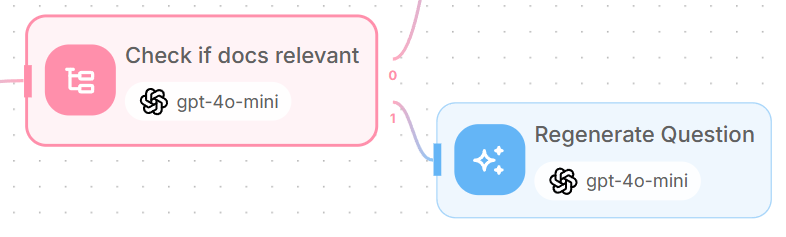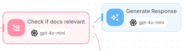 For relevant documents, add an LLM node connected to output 0 of the relevance checker - which is when the scenario “Relevant” is matched.