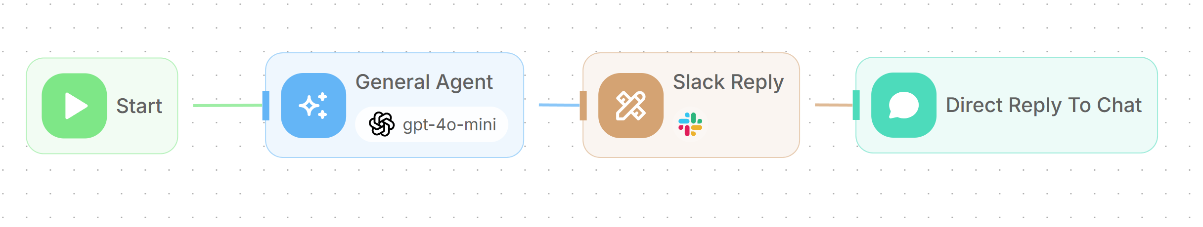 This provides direct responses for general queries without requiring document retrieval. You can also replace with Direct Reply node to return a predefined answer.
