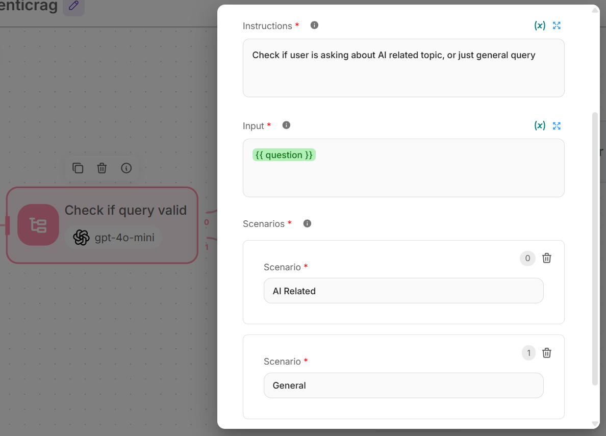 - Instructions: “Check if user is asking about AI related topic, or just general query”