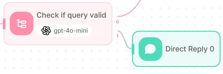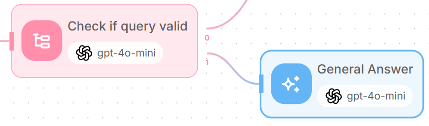 For AI-related queries, add an LLM node connected to output 0 of the condition agent - which is the scenario for “AI-related”.