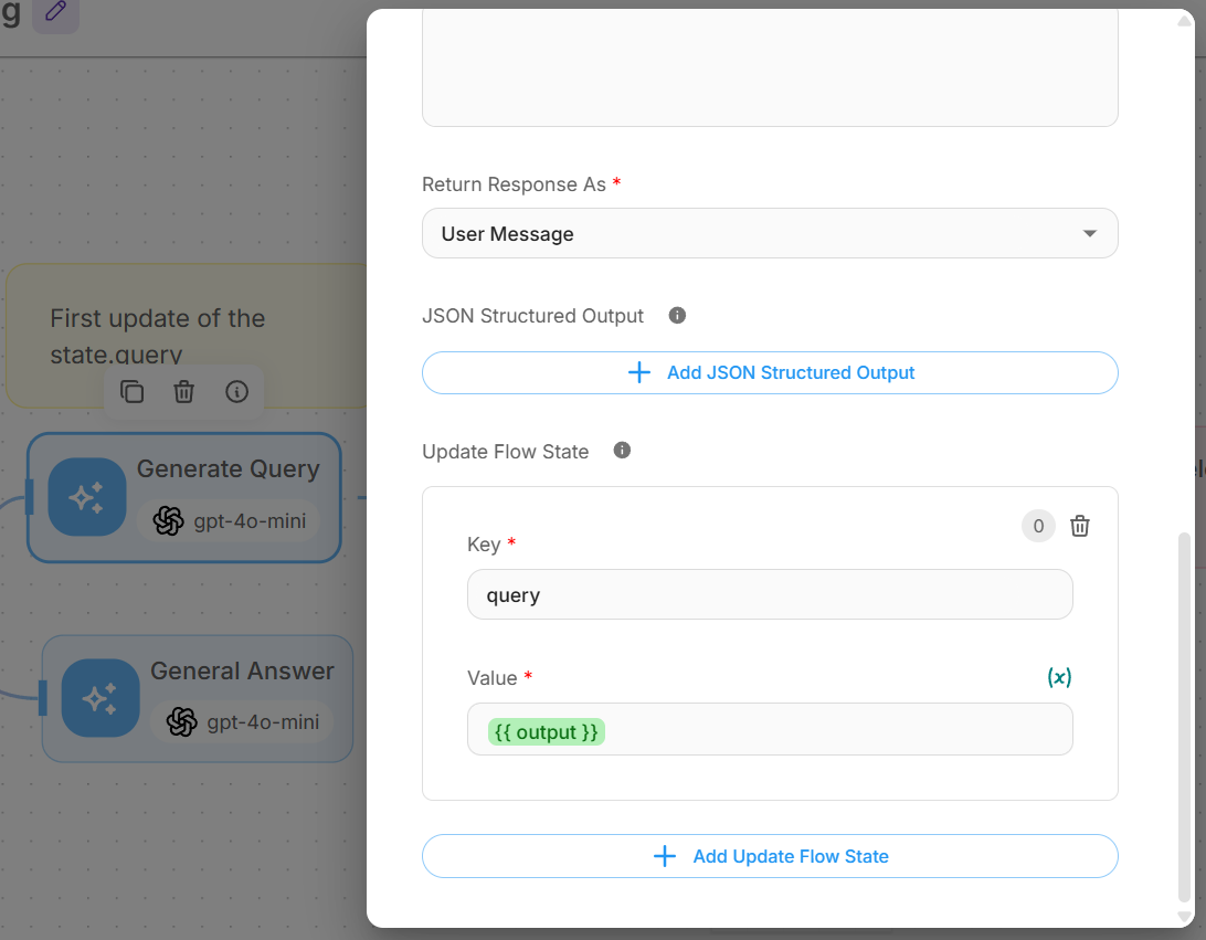 Update Flow State: Set key “query” with value