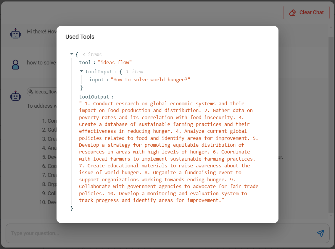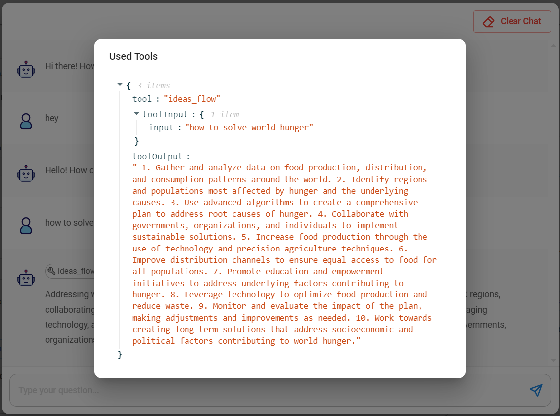 - Each children flow as tool will execute on its own, with separate memory to allow cleaner output