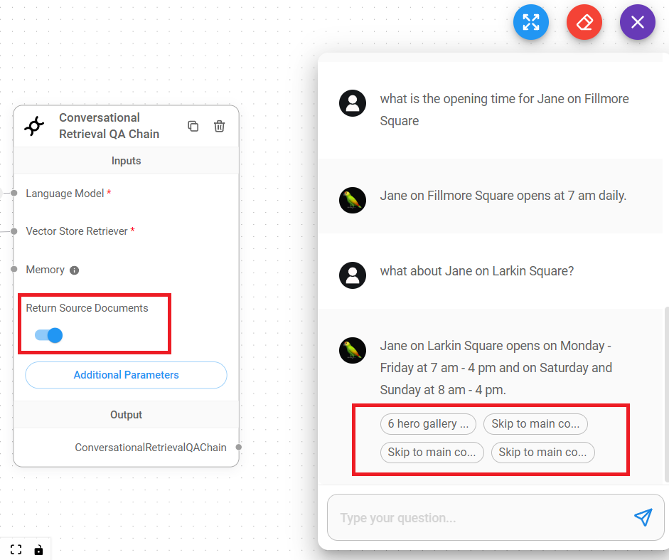 You can also turn on the Return Source Documents option to return a list of document chunks where the AI’s response is coming from.