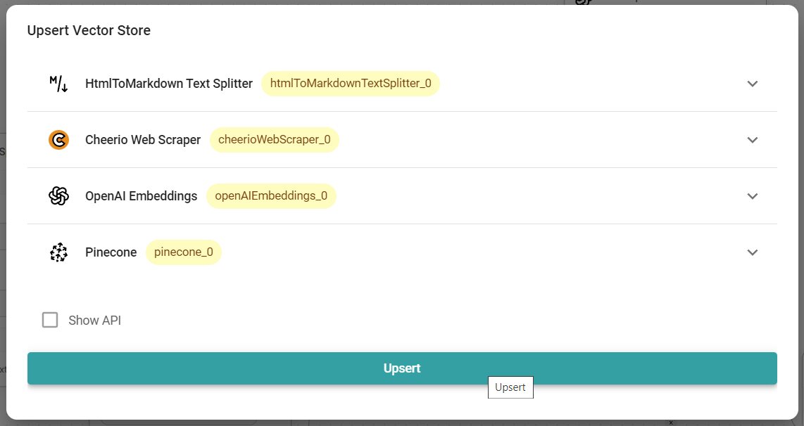 - A dialog will be shown that allow users to upsert data to Pinecone: