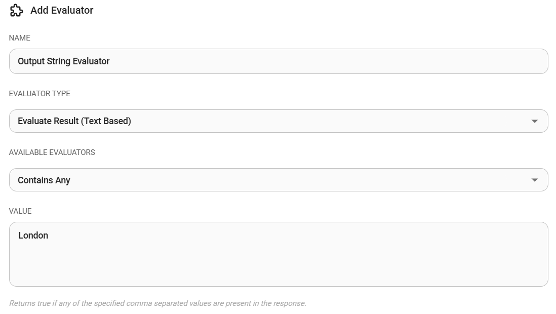 2.) Select the evaluators. Only string based and numeric based evaluators are available to be selected at this stage.