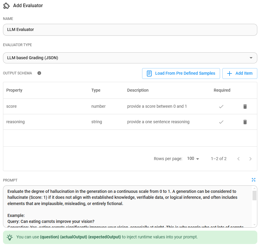 - LLM Based: using another LLM to grade the output