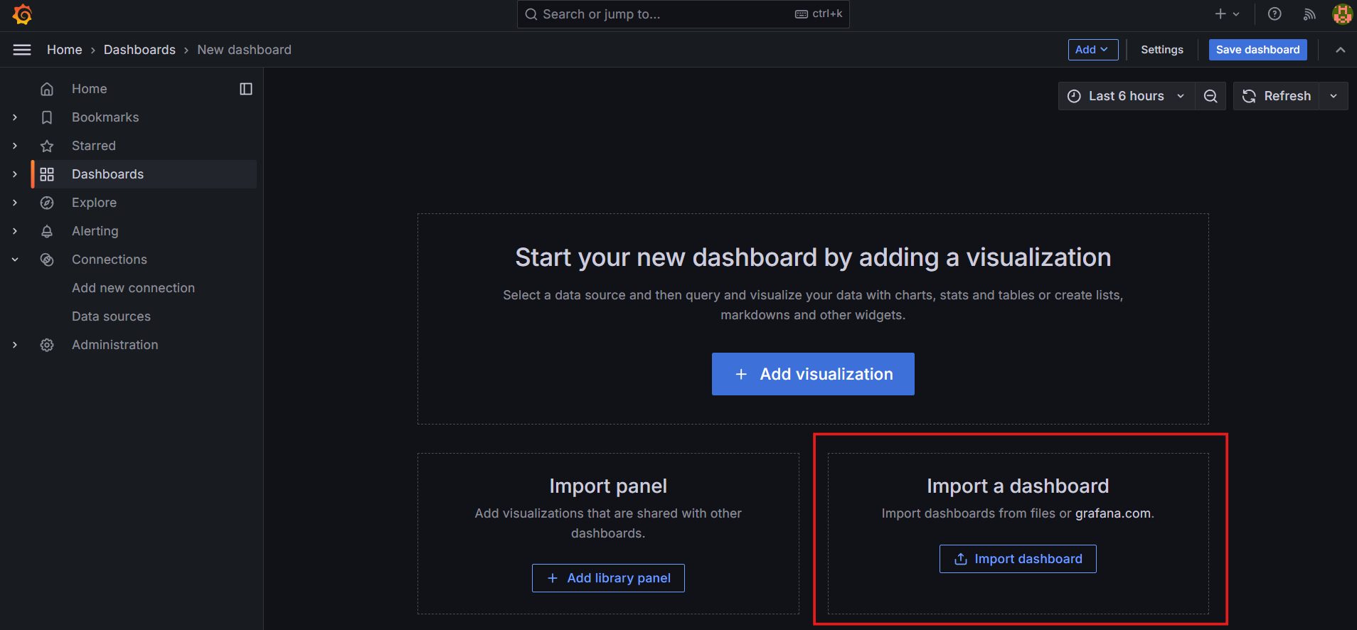 Now that connection is added successfully, we can start adding dashboard. From the left side bar, click Dashboards, and Create Dashboard.