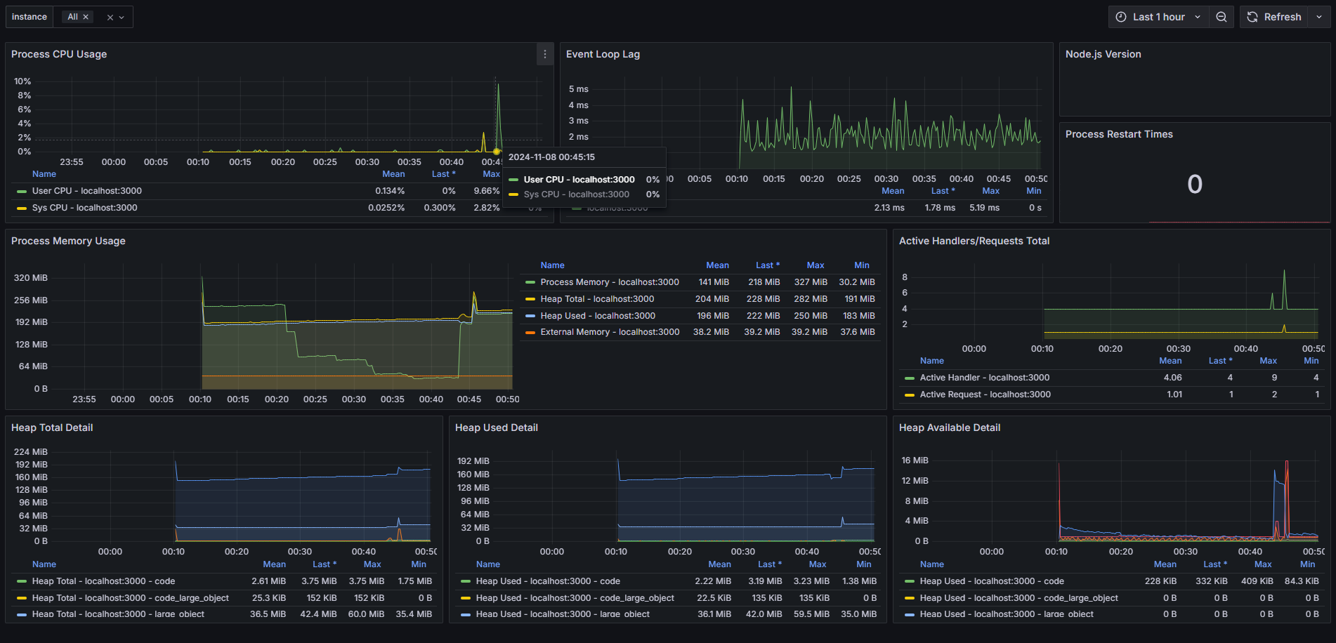 - grafana.dashboard.server.json.txt: metrics of the Flowise node.js instance such as heap, CPU, RAM usage