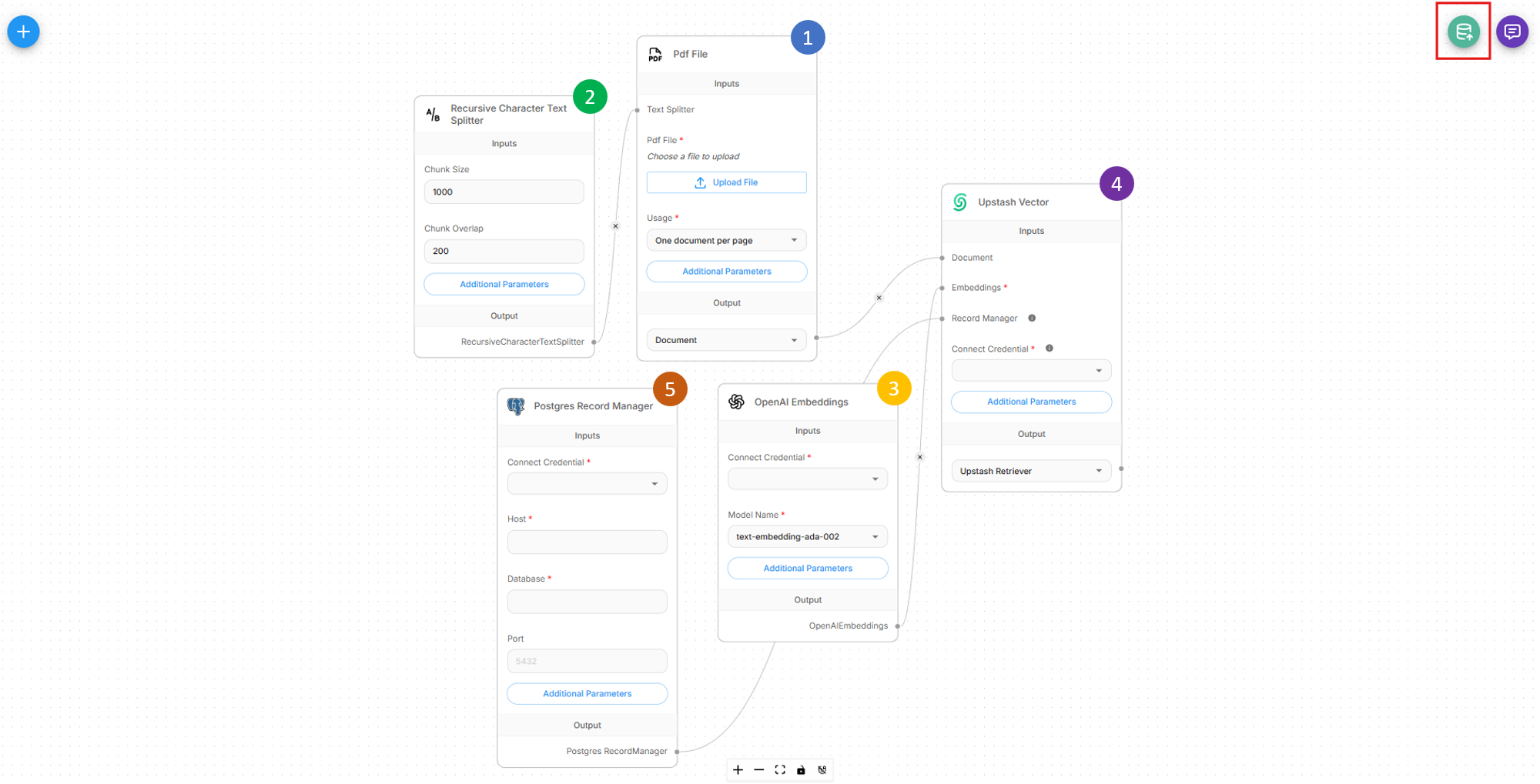 In this guide, we are going to cover another method - Chatflow Upsert. This is an older method prior to Document Stores.