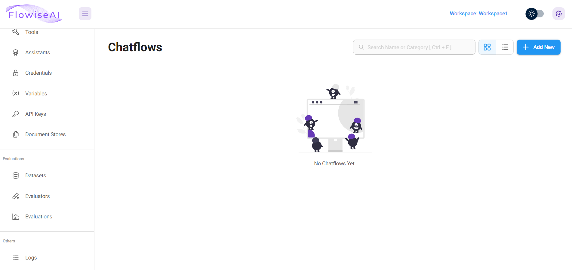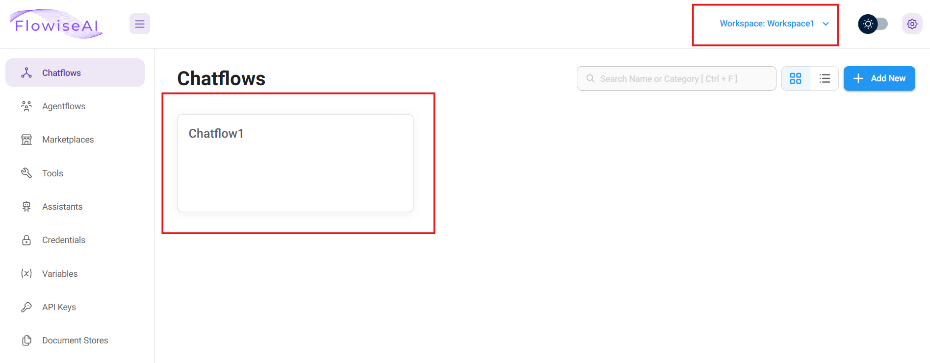 Here, we create a Chatflow named Chatflow1 in Workspace1:
